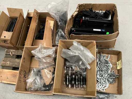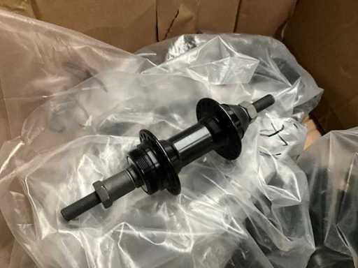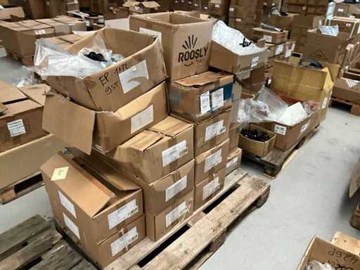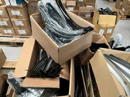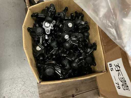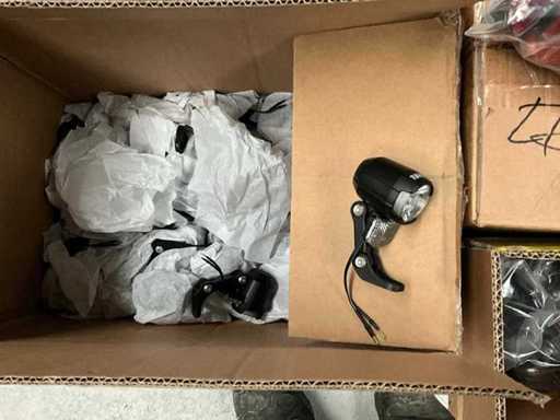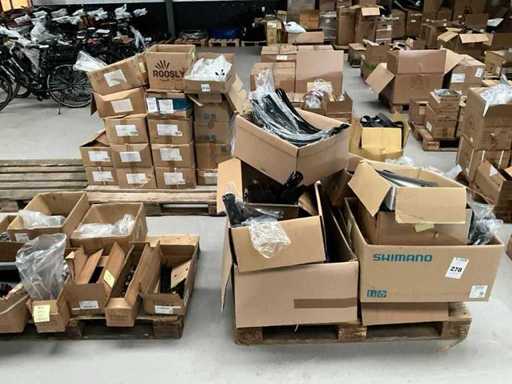 Bestaand uit 6x pallet met inhoud bestaande uit spatborden, hydraulische handremmen, wielnaven, tandwielen, versnellingsapparaten, binnenbanden, voor een achterlichten, enz…
