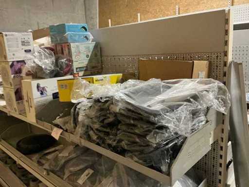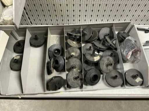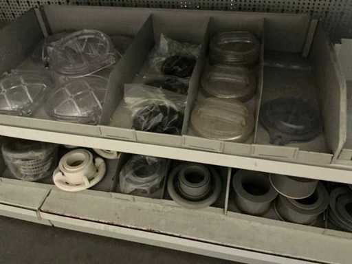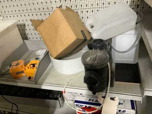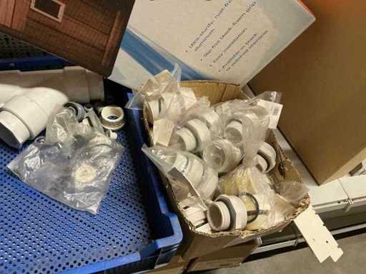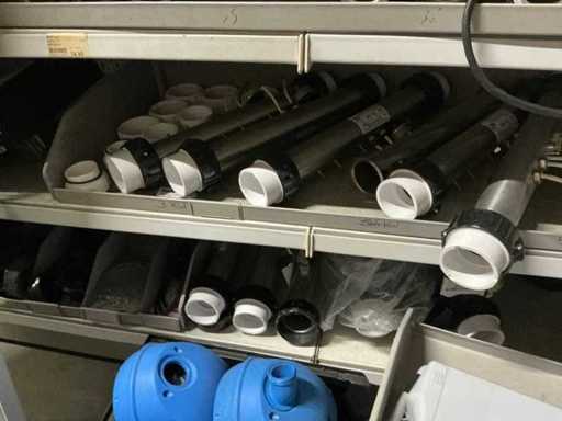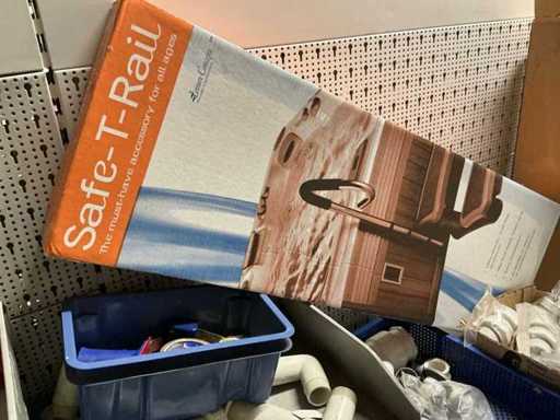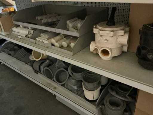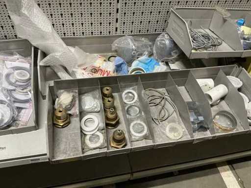Bestaande uit partij diverse swirls voor spa’s, dichtingsringen, nozzeles, pulsators, lusters, afsluitingen, bromine generators, lagers, lichtfittings, blowers, diverse inbouwspeakers waaronder jbl, spatransmitters, controlepanelen, spa jets, behuizingen voor panelen, recup onderdelen, enzovoort