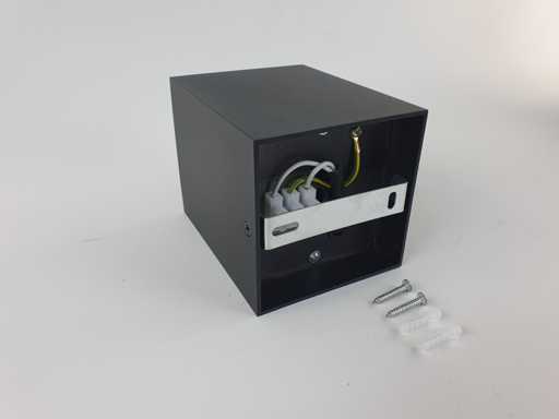 afdichting IP20, product kleur zand zwart, afm. 98 x 98 x 125mm, bevestiging inclusief, materiaal aluminium, fitting GU10, bulb niet inbegrepen, geschikt voor binnen, een bulb invoer, voltage 220-240V, SKU 00331