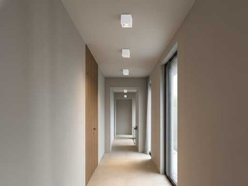 afdichting IP20, product kleur zand wit, afm. 80 x 80 x 84mm, bevestiging inclusief, materiaal aluminium, fitting GU10, bulb niet inbegrepen, geschikt voor binnen, een bulb invoer, voltage 220-240V, SKU 00838