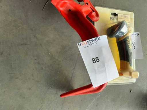Zijnde Ridgid buizenklem en Rems accu-lamp zonder accu en zonder acculader. Ongebruikt