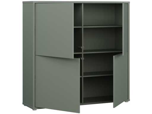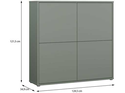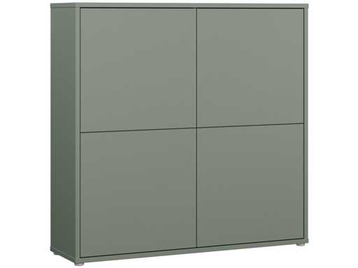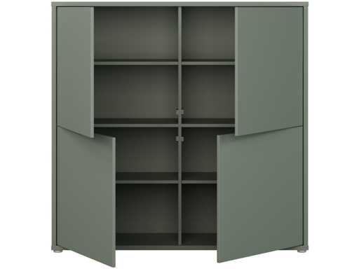 Met zijn vier grote deuren zonder handvat maakt dit meubelstuk indruk met zijn strakke, minimalistische ontwerp.