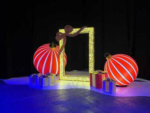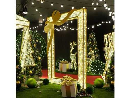 Verlicht "Hanna" frame in gouden afwerking, uitgerust met warme witte LED's. Dit gigantische fotolijstje nodigt je bezoekers uit om een pose aan te nemen voor een originele foto.