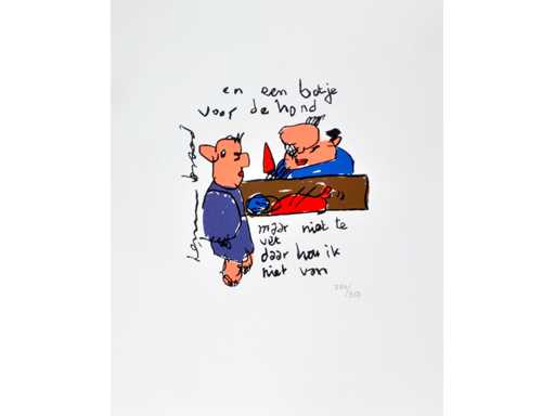 Kleurenzeefdruk - Botje voor de hond - in druk gesigneerd