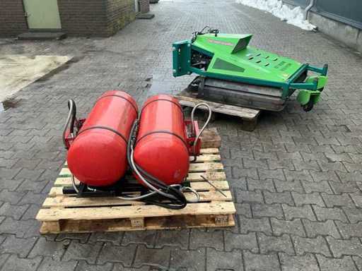 Voorzien van; digitaal scherm; gasflessen; wieltjes.