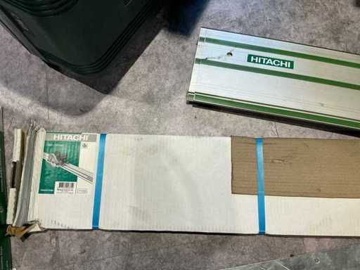 Volledig lot ongebruikte Hikoki cirkelzaag - machines nog verpakt in doos. Bestaande uit 1x Hikoki C7BUM, 1x Hikoki CJ 160V, 1x CM5MA, 1x Hikoki CC14SF, 1x Hikoki C9U3, 1x CJ90VAST2, 1x SV12SH,1x GM13Y, 1x SV13YA en 2x Hitachi 1400 x 200 geleiden latten voor zaagmachine met 3 opbergzakken.