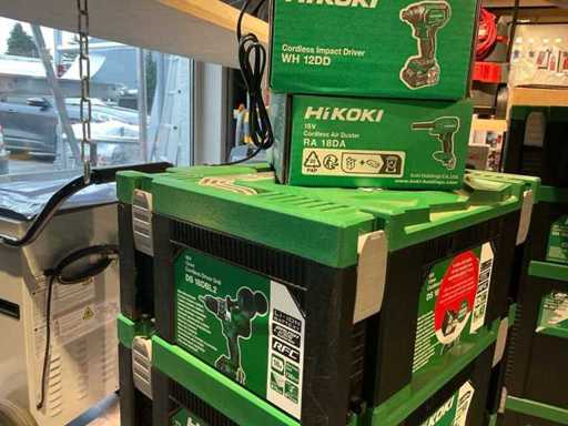 Volledig lot ongebruikte Hikoki schroef- machines nog verpakt in doos. Bestaande uit 1x Hikoki DH18DBL met Hitachi dust extractor system, 1x DH18DPA, 1x WR18DSHL, 1x G18DBBL, 1x CR18DA, 1x DS18DBL2 met 2x 5.0ah 18V batterijen en acculader, 1x RA18DA, 1x WH12DD en 1x DS12DD