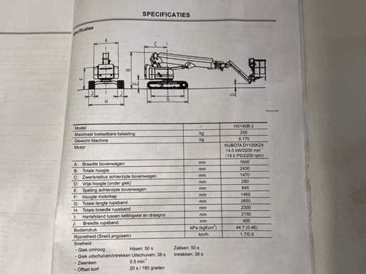 voorzien van "Kubota" 3-cilinder dieselmotor, type: D1105; JIB; zwarte rupsen; werkbak 2x 90 graden draaibaar; inclusief hoogwerkerboek.