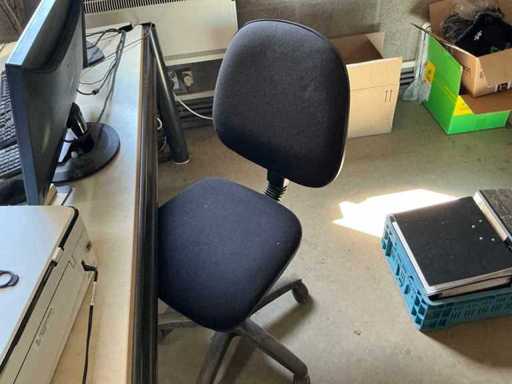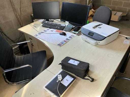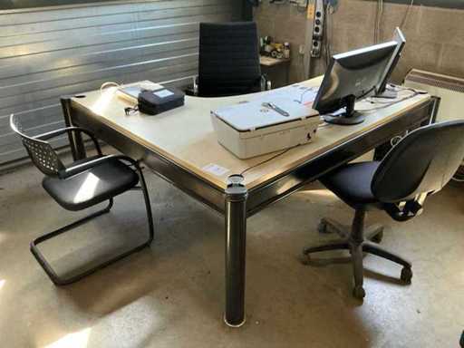 zonder IT, inclusief 2 bureaustoelen, bezoekersstoel, whiteboard, roldeurkast (zonder inhoud) 45x120xH146cm