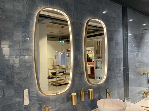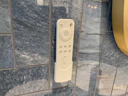 in geborsteld messing kader; anticondens en afstandsbediening; LET OP: door koper zelf ter plaatse nog te demonteren; zonder de getoonde accessoires