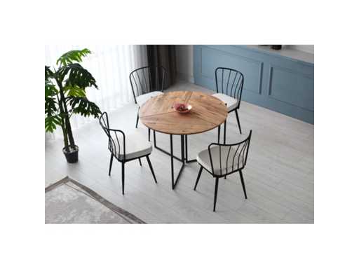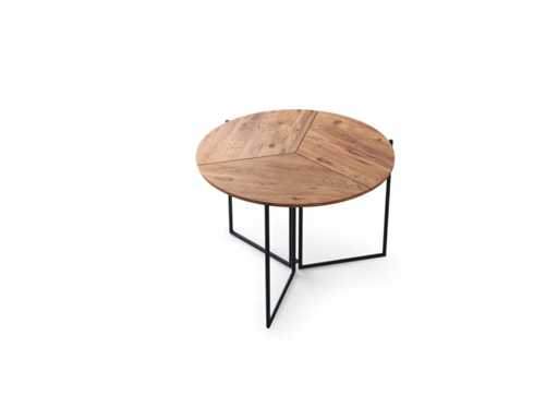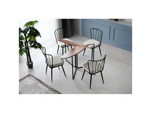 Het beschikt over inklapbare poten en tafels voor ruimtebesparende opslag.