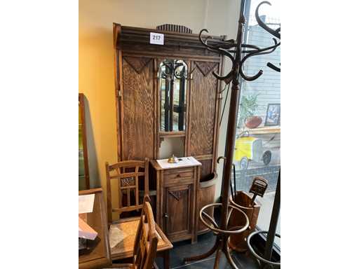 Houten staande antieke Kapstok