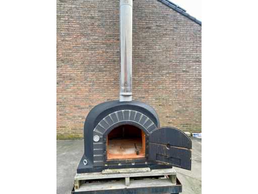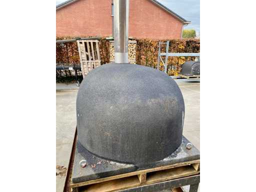 Houtgestookte zwarte kurk oven. Geïsoleerd. Inclusief inox schouw en inox hoed. NIEUW, ongebruikt.