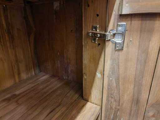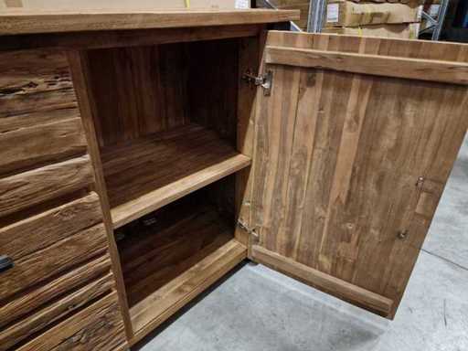 HSM Teak Dressoir Atlanta Vintage met 2 Deuren en 3 Laden - Zwart Metaal
