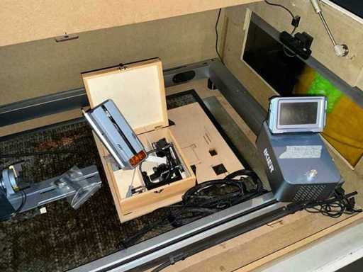 De Lasergraveer- en snijmachine bevindt zich in goede staat.