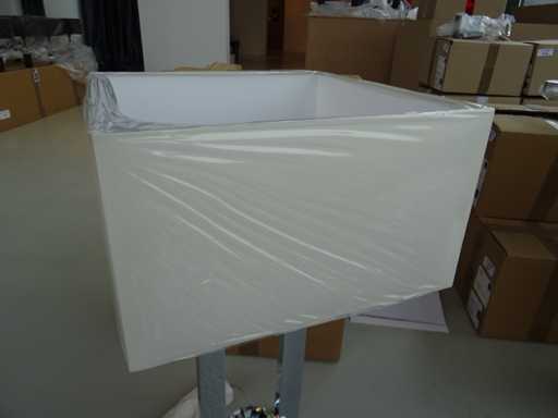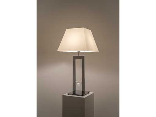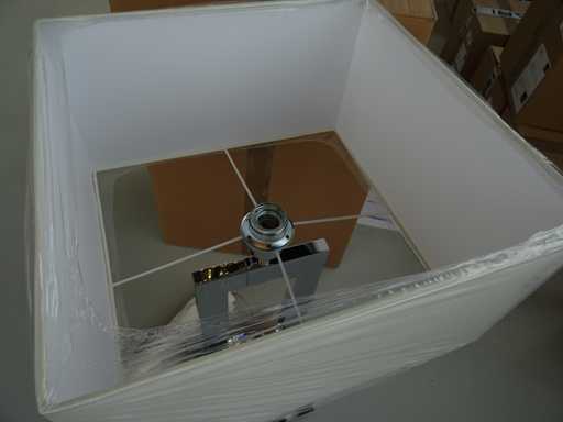 kleur: chromen armatuur, witte vierkanten kap; aantal lichtbronnen: 1; Let op voorbeeld foto, het betreft hier een vierkante kap ipv getoonde taps lopende kap; afmeting: 72 cm