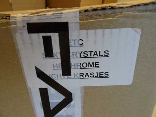 materiaal: Swarovski kristal; kleur: chroom; aantal lichtbronnen: 8; Tubes 3x 20cm 3x 30cm 2x 40cm, lichte krasjes.Let op betreft een chroom kleur, bijgaande fotos als voorbeeld