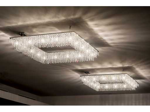 kleur: chroom; aantal lichtbronnen: 48; Let op, stockfoto geeft alleen de square H24 weer, het gaat hier om een 3 delige lamp; afmeting: grootste: 142x142 cm, kleinste: 61x61 cm