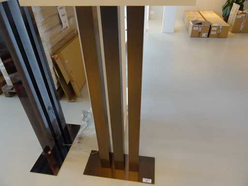 kleur: brons, crème wit kap; aantal lichtbronnen: 3; afmeting: 161x70x30 cm (hxbxd)