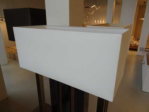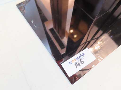kleur: special paint glans zwart; aantal lichtbronnen: 3; enkele beschadigingen aan voet; afmeting: 161x70x30 cm (hxbxd)