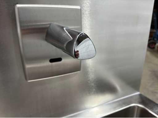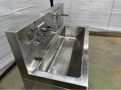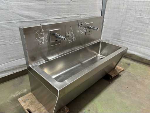 industriële wasbak inox met automatische kranen - Ophangmodel