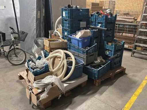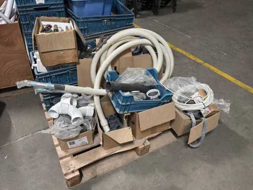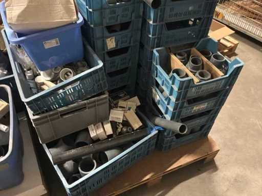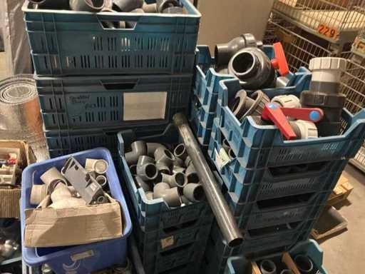 Verschillende pvc onderdelen zoals koppelingen, bochten, lijmkap, buisklem, aansluitingen diverse diameters, …