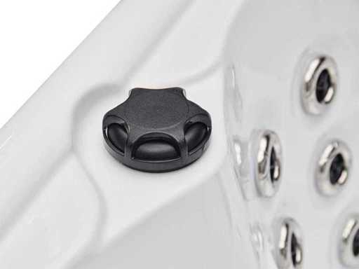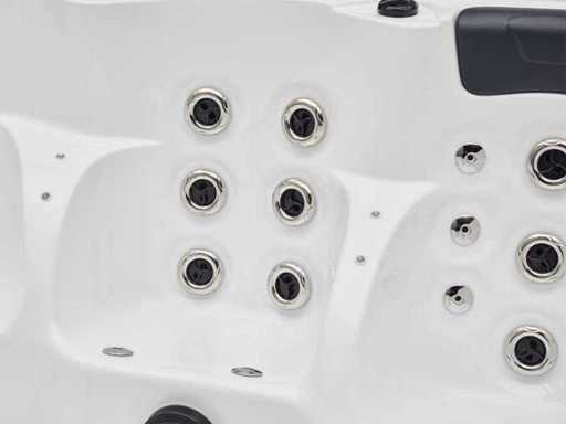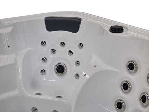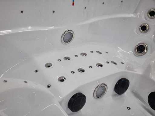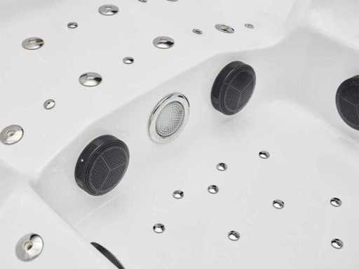Type: HT2021-WHNA Model: Vrijstaand Aantal personen: 6 persoons: 2 ligplaatsen en 4 zitplaatsen Waterjets: Totaal 91 jets, waarvan 66 waterjets van verschillende grootte en 25 airjets. Alle rugleuningen zijn voorzien van waterjets, waaronder roterende jets. Heater: 3 kW Heater om het water op temperatuur te houden Voorzien van: Zwarte cover (wordt gratis meegeleverd)- Radio - 2 speakers - Isolatie - 4 Hoofdkussens - Ozone desinfectie - Aansluitingen zijn vrij bereikbaar en de motoren werken op 220V (om te zetten naar 380V). Garantie: 1 jaar