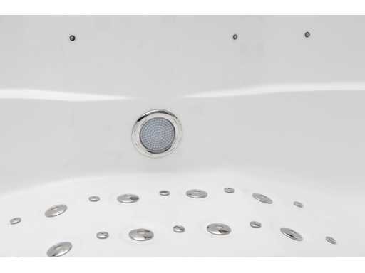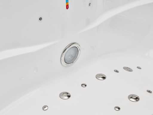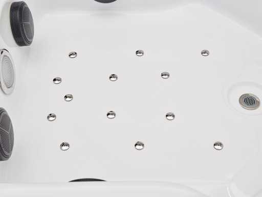 Type: HT2021-WHNA Model: Vrijstaand Aantal personen: 6 persoons: 2 ligplaatsen en 4 zitplaatsen Waterjets: Totaal 91 jets, waarvan 66 waterjets van verschillende grootte en 25 airjets. Alle rugleuningen zijn voorzien van waterjets, waaronder roterende jets. Heater: 3 kW Heater om het water op temperatuur te houden Voorzien van: Zwarte cover (wordt gratis meegeleverd)- Radio - 2 speakers - Isolatie - 4 Hoofdkussens - Ozone desinfectie - Aansluitingen zijn vrij bereikbaar en de motoren werken op 220V (om te zetten naar 380V). Garantie: 1 jaar