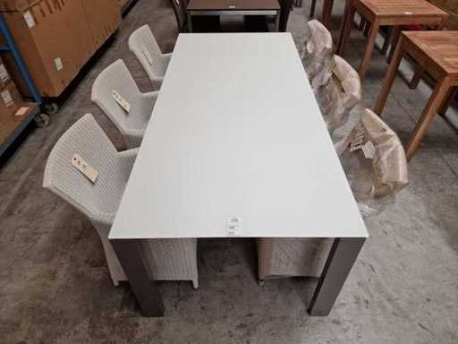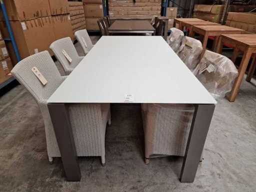 Jati-Kebon - Alu Tuintafel Arolla Steengrijs 220 x 100cm + Antraciet Glas