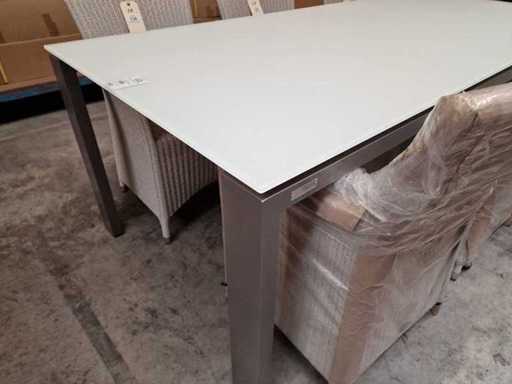 Jati-Kebon - Alu Tuintafel Arolla Platinagrijs 220 x 100cm + Wit Gehard Glas 1cm Dik - Glas Geëtst - Behandeld tegen krassen