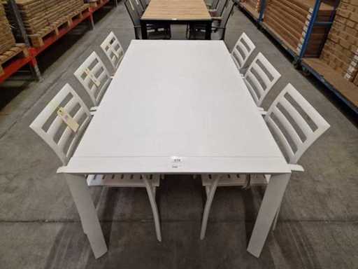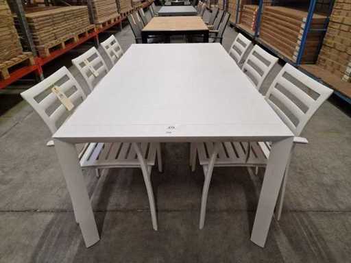 Jati-Kebon - Alu Tuintafel Aspen Wit Mat 200 x 100cm - Full Alu top Wit met Afgeschuinde Design Poten