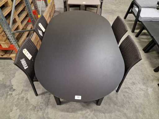 Jati-Kebon Alu Tuintafel Ovaal 190 x 110cm + HPL Blad Zwart