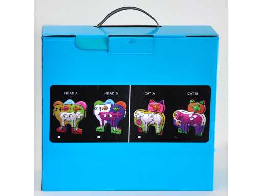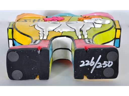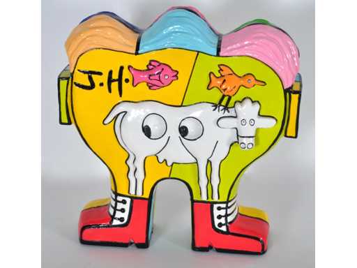 Kleurrijk object n de originele doos - De kunstwerken van Joop Hansen, vervaardigd uit een hoogwaardige harssamenstelling, zijn levendig uitgebeeld in zijn zomerse kleuren. Ze zijn een middel geworden om zijn levendigefantasie geheel in 3D uit te beelden. De dubbelzijdige beelden zijn aan beide zijden verschillend. Ze zijn tevens voorzien van een fleurige trendy verpakking en dienen dan ook ideaal als geschenk.