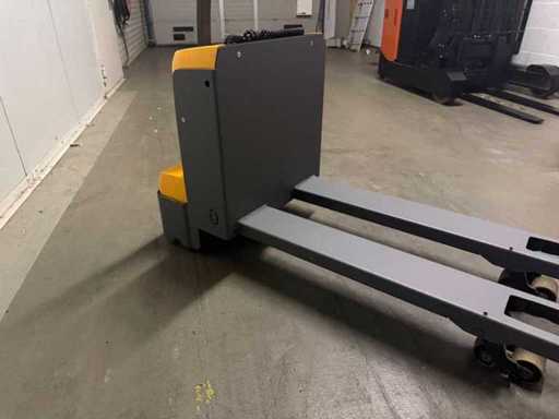Voorzien van : EJE M13 ( Jungheinrich ), serie nummer : FN921954, hef vermogen : 1300kg, eigen gewicht incl batterij : 225kg, urenstand : 399, bouwjaar : 05-2016, wielbasis 1.212 m, standard banden TPU 1x+2/4, lengte 1.585 m, breedte 0.65 m, hoogte 0.74 m, hefhoogte