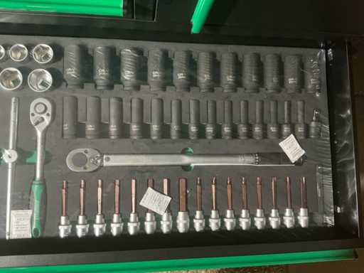 Schroevendraaierset, tangenset, dopsleutels en inbussleutels, torx, algemeen handgereedschap, doppenset, doppenset met bit, steeksleutelset en beugels. Staat: nieuw, nooit gebruikt.