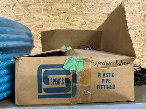 Waaronder cebec, mapp, Spears, waaronder reflex, trekdraad, rxd20, oflex heat 180 3G 2,5, reflex rxx 3G 15, data kabel rxft p5e, installatiekabel,diverse verlengsnoeren, elektrische kabel waaronder drijfkracht, enig condensators, enige bevestigingsmaterialen, pvc lijm, 5 diverse pompen, waaronder flo-master xp2, 5x diverse controllers aeware, enzovoort.