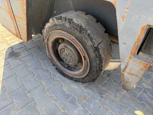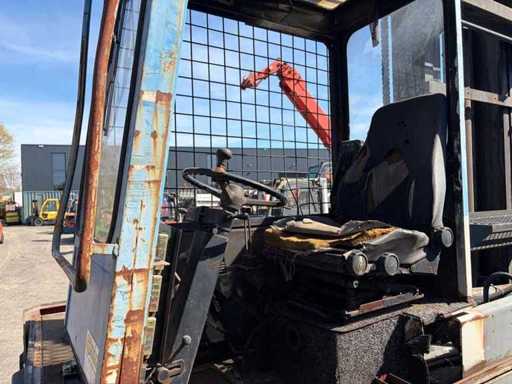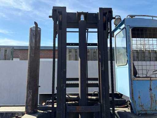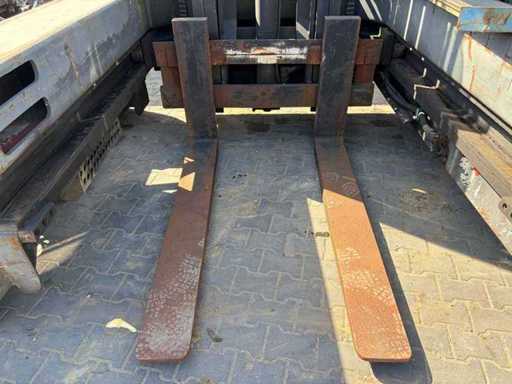 Voorzien van: 5.000 kg hefvermogen bij 600 mm lastzwaartepunt, voorzien van Perkins motor (±57 kW), duplex mast, massieve banden, eigen gewicht rond 10.000–15.000 kg