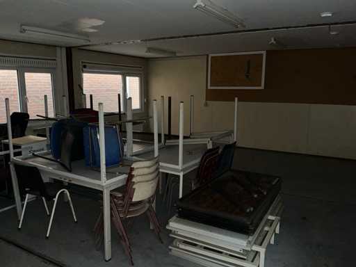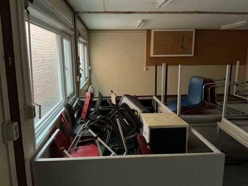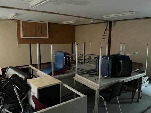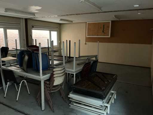 Voorzien van: tafels en stoelen, verlichting, elektrische verwarming, stopcontacten, stoppenkast, krachtstroom, ventilatieroosters, rolluiken. De drie units zijn losgekoppeld. Laadmogelijkheden in overleg met de verkoper