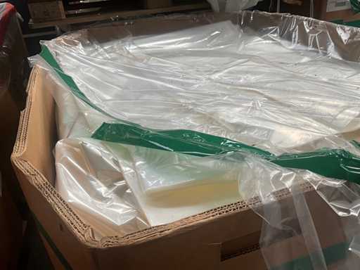 kartonnen boxen met plastic restanten (10x) en diverse rollen