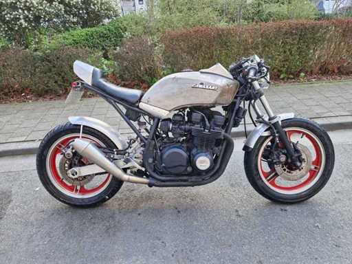 superbe Kawasaki GPZ 750 de 1983 modifiée en café racer avec soin, carénages en aluminium, réservoir traité à l'acide, feu avec contour led, double échappement Leo Vince, filtration d'air K&N.