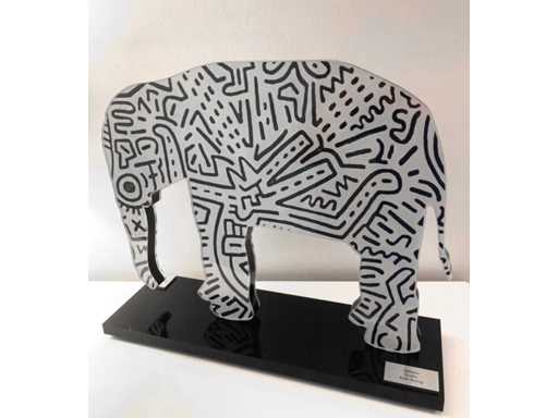 Keith HARING (na), Olifant, Sculptuur Uitgave Studio, op plexiglas, Oplage: 50 genummerde exemplaren, Afmetingen 38 x 33 x 3 cm. Met editie certificaat.