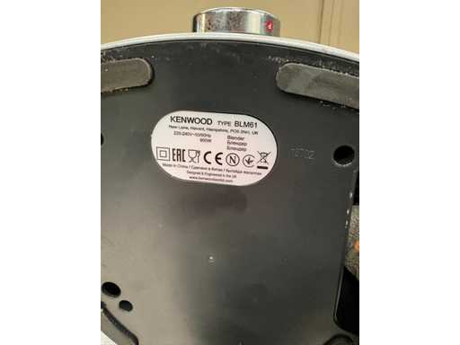 Elektrische blender van het merk Kenwood, uitgerust met een glazen mengkan en roestvrijstalen messen. Geschikt voor het mixen van smoothies, soepen, sauzen en ijs. Consumentenmodel, maar vaak gebruikt in kleinere horecakeukens of back-of-house.