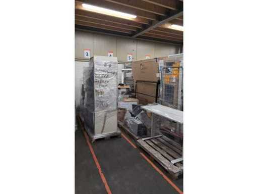 Conditie: gebruikt; afmetingen linkerdeel circa 225x60x90 cm; afmetingen rechterdeel circa 283x60x220 cm; zonder spoelbak; zonder Amerikaanse koelkast; reeds gedemonteerd en ingepakt op pallets. (afstapelen, omruilen of statiegeld per pallet); pallets zijn niet inbegrepen; statiegeld betalen bij afhalen, of pallets afstapelen; werkblad niet ingepakt op pallets (26-2DE-03339)