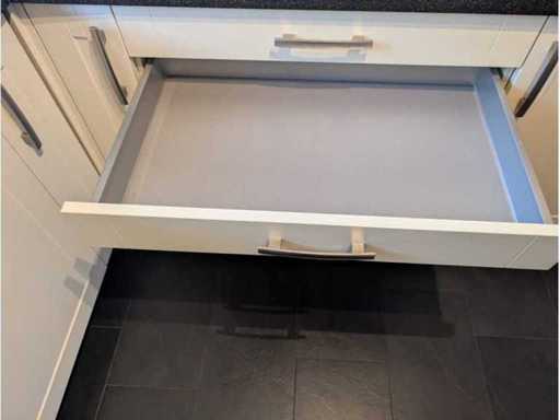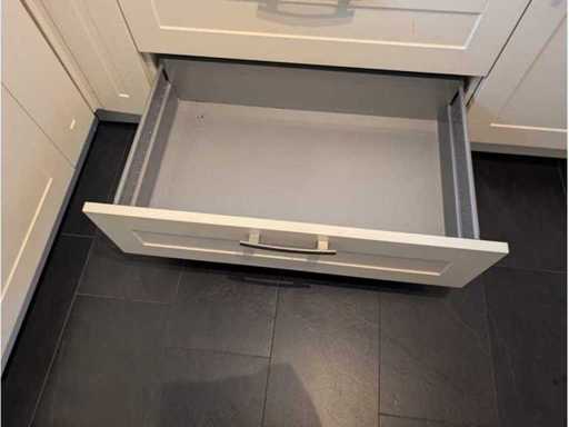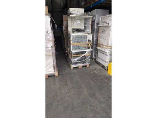 Conditie: gebruikt; afmetingen linkerdeel circa 233x60x90 cm; afmetingen rechterdeel circa 300x60x220 cm; reeds gedemonteerd en ingepakt op pallets. (afstapelen, omruilen of statiegeld per pallet); pallets zijn niet inbegrepen; statiegeld betalen bij afhalen, of pallets afstapelen; werkblad niet ingepakt op pallets (26-2DE-03170)