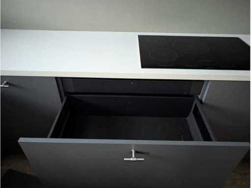 Conditie: gebruikt; afmetingen spoelbakgedeelte circa 307x70x90 cm; afmetingen kookplaatgedeelte circa 443x65x90 cm; afmetingen kastenwand circa 184x63x220 cm; reeds gedemonteerd en ingepakt op pallets. (afstapelen, omruilen of statiegeld per pallet); pallets zijn niet inbegrepen; statiegeld betalen bij afhalen, of pallets afstapelen; werkblad niet ingepakt op pallets (26-2DE-03124)