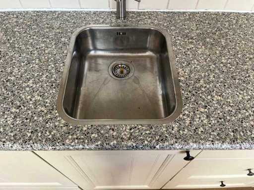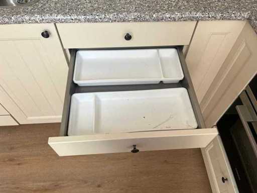 Conditie: gebruikt; zonder kraan; afmetingen linkerdeel circa 316x60x239 cm; afmetingen rechterdeel circa 176x60x90 cm; reeds gedemonteerd en ingepakt op pallets. (afstapelen, omruilen of statiegeld per pallet); pallets zijn niet inbegrepen; statiegeld betalen bij afhalen, of pallets afstapelen; werkblad niet ingepakt op pallets (26-2DE-03132)