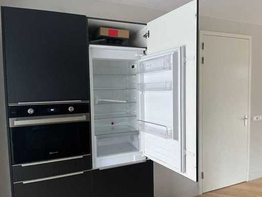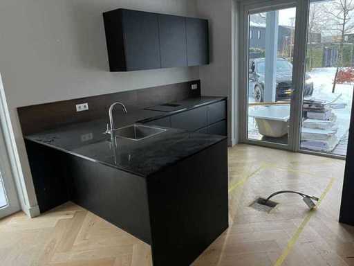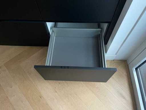 afmetingen linkerdeel lxb ca. 187x100 cm; afmetingen rechterdeel lxb ca. 320x60 cm; Afmetingen hoge kasten lxbxh ca. 123x60x221 cm;