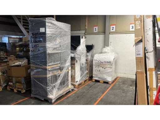 Reeds gedemonteerd en ingepakt op pallets. (afstapelen, omruilen of statiegeld per pallet); Pallets zijn niet inbegrepen; statiegeld betalen bij afhalen, of pallets afstapelen; werkblad niet ingepakt op pallets