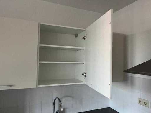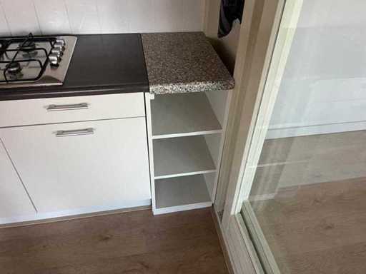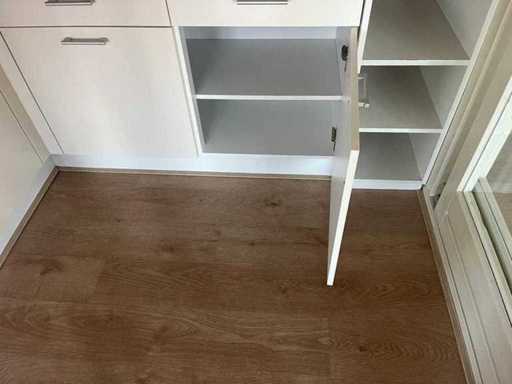 Conditie: gebruikt; afmetingen linkerdeel circa 246x60x211 cm; afmetingen rechterdeel circa 222x60x90 cm; reeds gedemonteerd en ingepakt op pallets. (afstapelen, omruilen of statiegeld per pallet); pallets zijn niet inbegrepen; statiegeld betalen bij afhalen, of pallets afstapelen; werkblad niet ingepakt op pallets (26-2DE-03781)