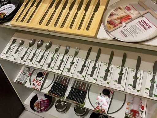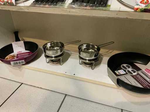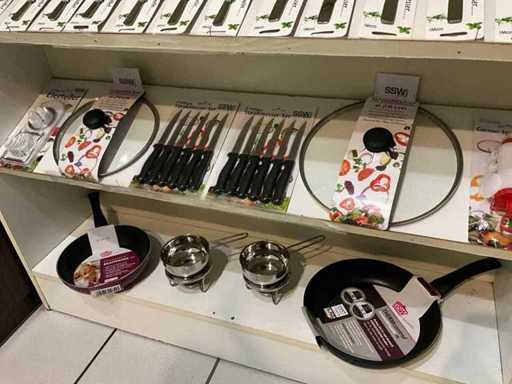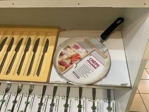 Waaronder diverse pannen en deksels waaronder pannekoekpan, divers bestek SSW